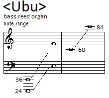<3Pi>, a 2 1/2 octave high membrane driven regal using conical pipes (2022) midi note range: 60 to 89